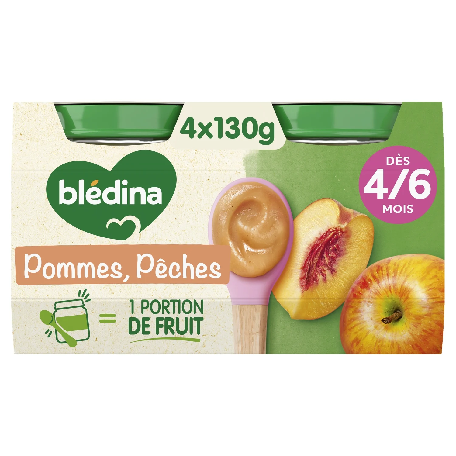 Ingrédients : Purée de pommes 70,0 % – Purée de pêches 30,0 % -Antioxydant : Acide ascorbique – SANS GLUTEN