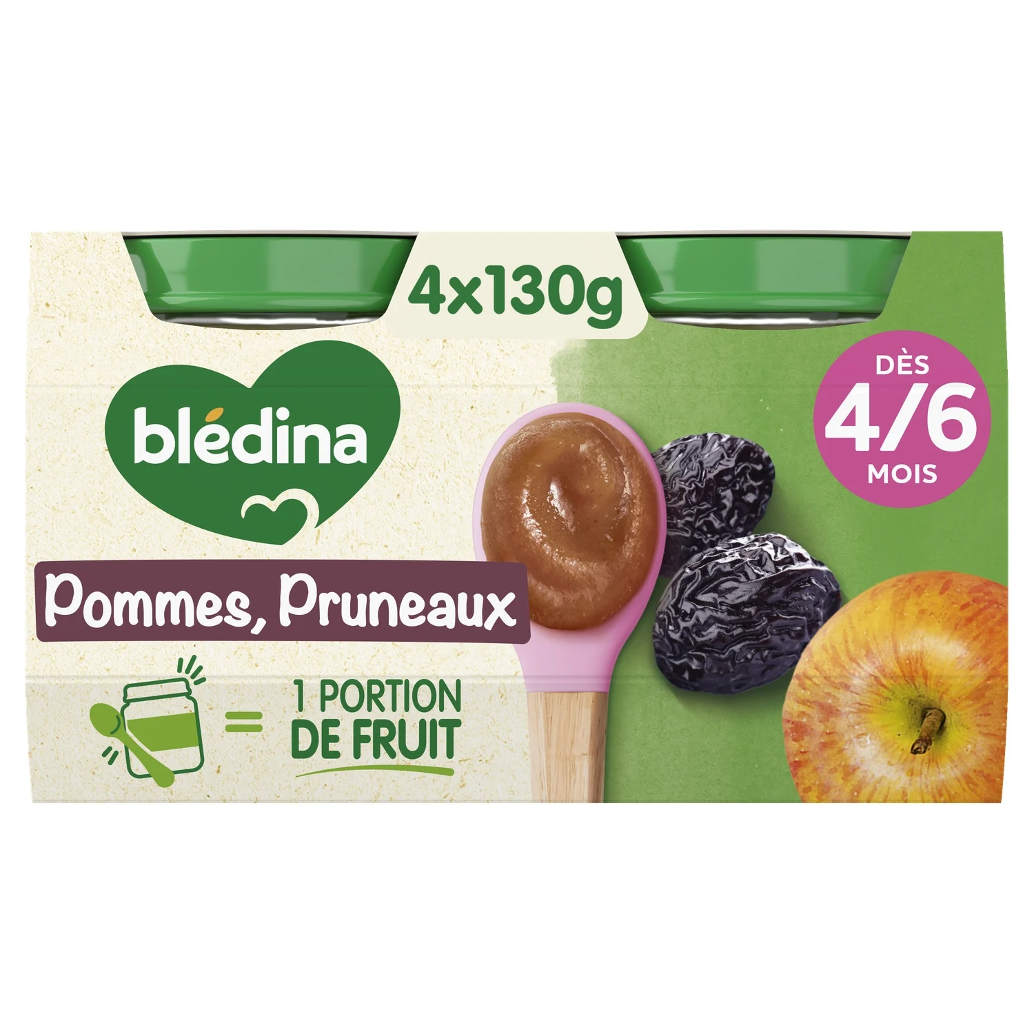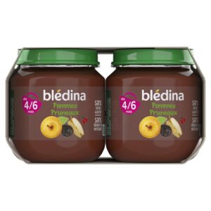 Ingrédients : Purée de pommes 79,0 % – Purée de pruneaux 21,0 % -Antioxydant : Acide ascorbique – SANS GLUTEN