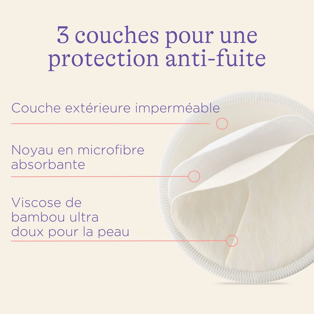 Les coussinets d’allaitement lavables Lansinoh sont fabriqués à partir de matériaux soigneusement sélectionnés pour offrir une expérience de qualité supérieure :