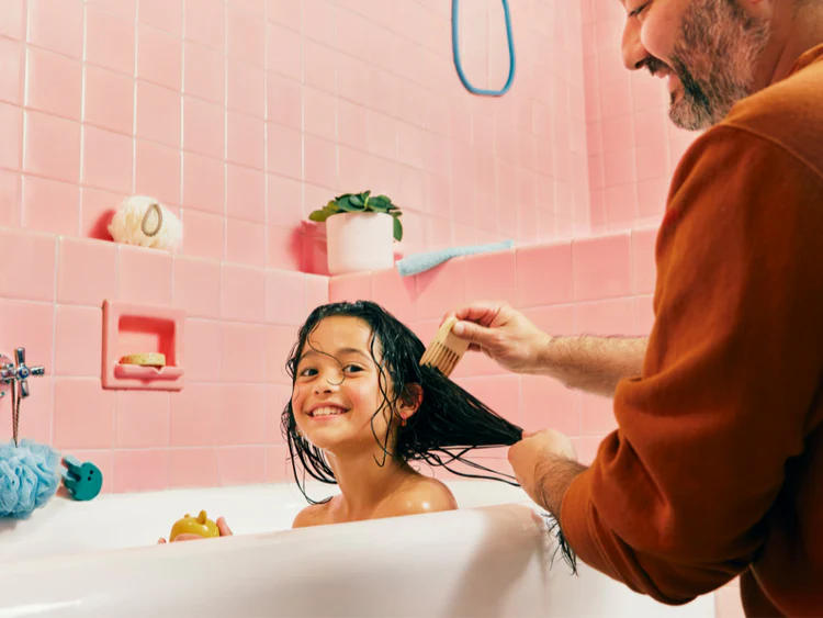 • Notre Shampoing Crème Démêlant & Nourrissant, spécialement conçu pour les cheveux longs, ondulés et bouclés, nettoie en douceur, nourrit et démêle les petites têtes pour faciliter le quotidien des parents.