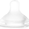 - Silicone sablé ultra doux. Imite la texture et la consistance du mamelon maternel. Obtenez une flexibilité maximale pour s’adapter au palais
